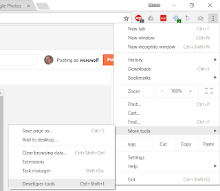 2. Go to the 3 dots icon at the top right and select More Tools->Developer Tools.